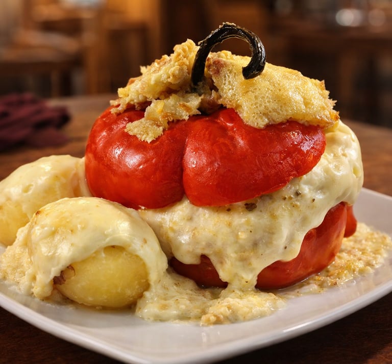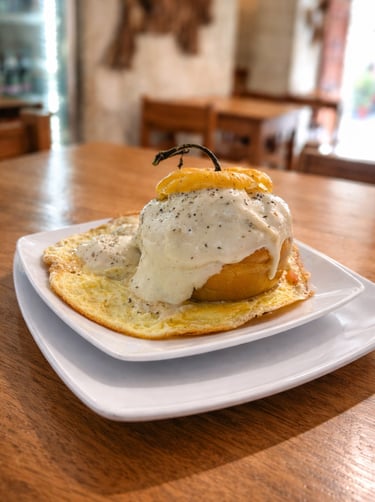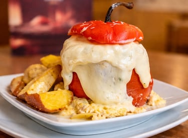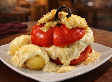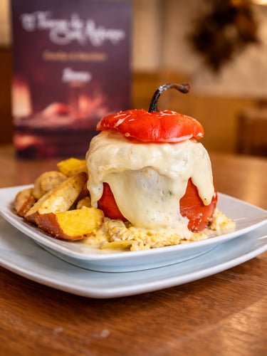 Un emblema de la cocina andina, intenso y lleno de carácter. Rocotos cuidadosamente desvenados y rellenos con una preparación tradicional, equilibrando el picor natural con sabores profundos y reconfortantes. Horneado lentamente y coronado con cremoso queso gratinado, es un plato que celebra la identidad, la historia y el espíritu de la gastronomía local en cada bocado.