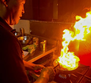 En El Fuego de San Antonio, todo comienza con el fuego. La brasa no es solo una forma de cocinar, es un ritual que exige tiempo, paciencia y respeto por la tradición. Es el corazón de nuestra cocina y el punto de encuentro entre culturas.
