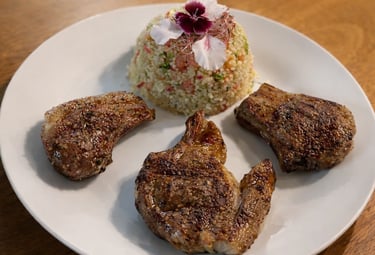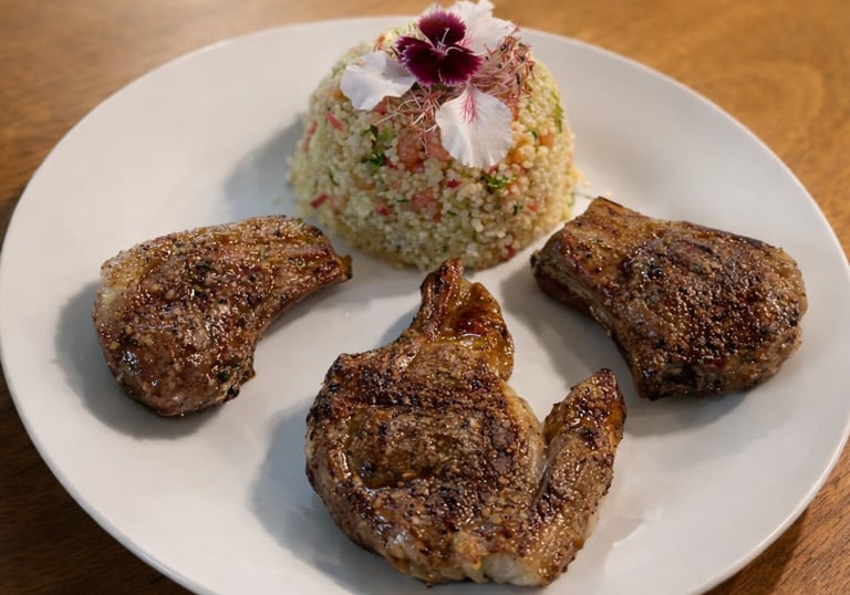 Cordero seleccionado, cocinado a la parrilla y servido con el punto justo de cocción.