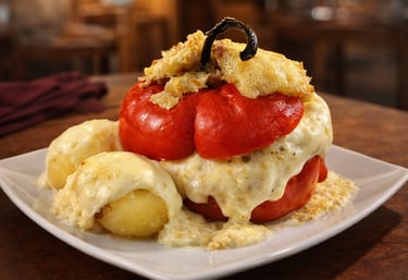 Rocoto tradicional relleno y horneado, uno de los platos emblemáticos de la cocina arequipeña.